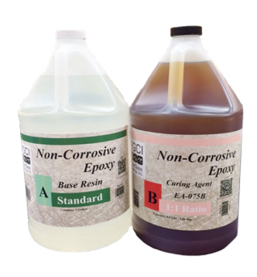 Step 2: Using the Laminate Coverage Chart, measure product in accordance with your intended use. Prepare 1 part Base Resin to 1 part Curing Agent by liquid volume or 100 parts Base Resin to 83 parts Curing Agent by weight. Pour the Curing Agent first and then the Base Resin into a clean, smooth-sided container large enough to hold all the liquid and allow room for mixing.